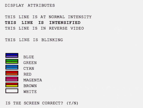 Y : Cela met fin aux diagnostics pour l'écran couleur amélioré IBM (ou un moniteur compatible).