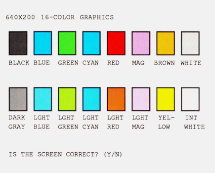 - 640 x 200 et 320 x 200, graphiques 16 couleurs