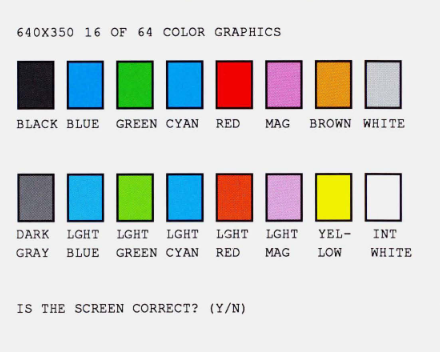 - 640 x 350, graphiques 16 couleurs (à partir d'une palette de couleurs allant jusqu'à 64 couleurs différentes)