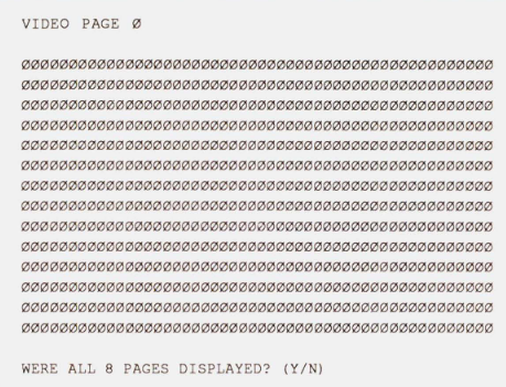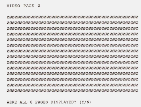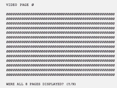 Appuyez sur n'importe quelle touche pour parcourir les 8 pages vidéo. Continuez jusqu'à ce que "VIDEO PAGE 0" apparaisse sur votre écran. Les 8 pages semblaient-elles toutes similaires à celle ci-dessous ?