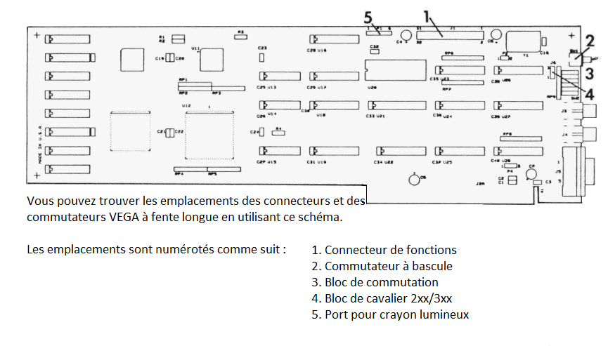 La carte vidéo VEGA peut résider dans n'importe quel emplacement d'extension système ouvert des ordinateurs compatibles IBM PC, PC/XT, PC/AT ou 100% compatible IBM PC.