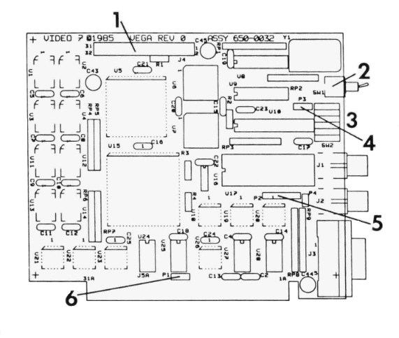 Si la carte vidéo VEGA doit être installé sur un IBM PC ou PC/XT fabriqué avant avril 1983, vous devez avoir le nouveau module ROM installé sur la carte système avant d'installer la carte VEGA. Si vous avez un IBM PC/AT, vous n'aurez pas besoin de vérifier la date de fabrication. Les PC compatibles doivent être vérifiés par le revendeur.