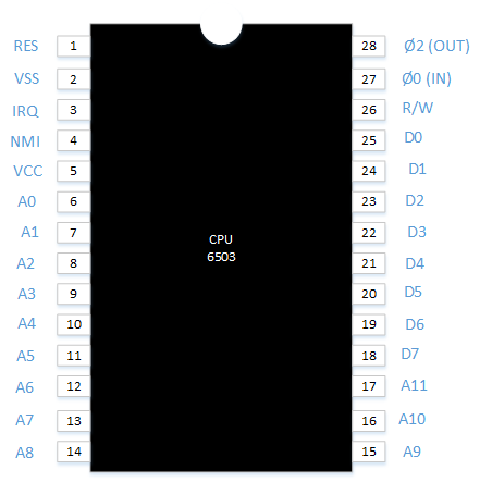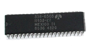 Le microprocesseur 6503 de l'entreprise MOS Technology est un microprocesseur peut cher à produire sur 28 broches.