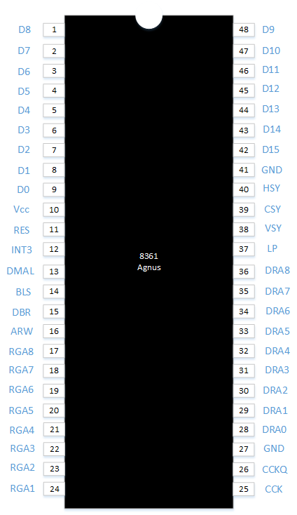La puce 8361 de MOS Technology, surnommé «Agnus», est une destiné à gérer les transferts de bloc de mémoire des micro-ordinateurs Amiga de l'entreprise Commodore. Il contrôle tous les accès à la RAM de la puce à partir du microprocesseur MC68000 et des autres puces personnalisées, en utilisant un système de priorité complexe. La puce Agnus (8361) comprend des sous-composants connus sous le nom de Blitter (transfert rapide de données en mémoire sans l'intervention du processeur) et de Copper (coprocesseur synchronisé par vidéo). La puce Agnus original peut adresser 512 Ko de RAM.