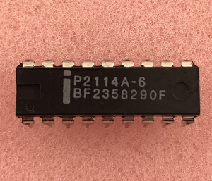 La puce Intel 2114A de l'entreprise Intel est une RAM (Random Access Memory) organisé en 1024 mots par 4 bits en utilisant le HMOS, soit la technologie MOS haute performance. Il utilise des circuits entièrement statiques (statiques), à la fois dans le tableau et le décodage, par conséquent, il ne nécessite aucune horloge ou rafraîchissante pour fonctionner. L'accès aux données est particulièrement simple car les temps d'établissement d'adresse ne sont pas requis. Les données sont lues de manière non destructive et ont la même polarité que les données d'entrée. Des broches d'entrée/sortie communes sont fournies.