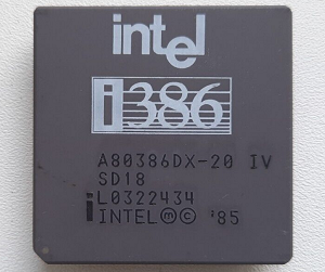 Le microprocesseur 80386DX de l'entreprise Intel est le premier microprocesseur 32 bits de la famille des 80x86. Il est parfois surnommé le i386DX ou i80386DX. Aussi, sur les puces électronique, il est plutôt écrit A80386 ou A80386DX. Il est le successeur des microprocesseur 80286 d'Intel. Grâce au microprocesseur 80386DX comble sont retard face à son concurrent MC68020 de Motorola sortie un an plus tôt utilisé par de nombreux rivaux des compatibles PC. Le premier compatible PC ayant proposé se microprocesseur fut le Compaq 386, bien avant qu'il soit utilisé dans la famille des PS/2 d'IBM. Le jeu d'instructions est compatible avec les microprocesseur 8086, 8088 et 80286 et en plus il fait l'intégration de nombreux registres 32 bits pouvant être traiter aussi bien en 8 bits, 16 bits qu'en 32 bits selon les besoins des programmes l'utilisant.