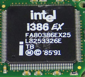 Le microprocesseur intégré Intel 80386EX (Intel386EX) de l'entreprise Intel est un microprocesseur ou les puces d'ensembles sont intégrés au processeur principal. La version fonctionnant à 20 ou 25 MHz à 3 volts nominal est nommé Intel386 EXTB, tandis que la version 25 ou 33 MHz à 5 volts est nommé Intel386 EXTC. Le processeur intégré Intel386EX est un processeur entièrement statique 32 bits, entièrement intégré et optimisé pour les applications de contrôle intégrées. Avec un bus de données externe de 16 bits, un bus d'adresses externe de 26 bits et le SMM (System Management Mode) d'Intel, le microprocesseur Intel386EX apporte la vaste bibliothèque logicielle de l'architecture Intel386 aux systèmes embarqués. Il offre les avantages de performance de la programmation 32 bits avec les économies de coûts associées aux systèmes matériels 16 bits. Le microprocesseur 80386EX est utilisé principalement dans les appareils satellites et micro-satellites.