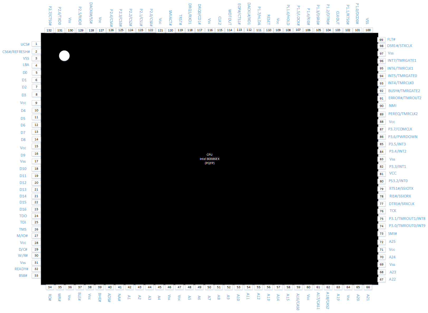Voici le schéma des broches de la puce 80386EX de l'entreprise Intel :