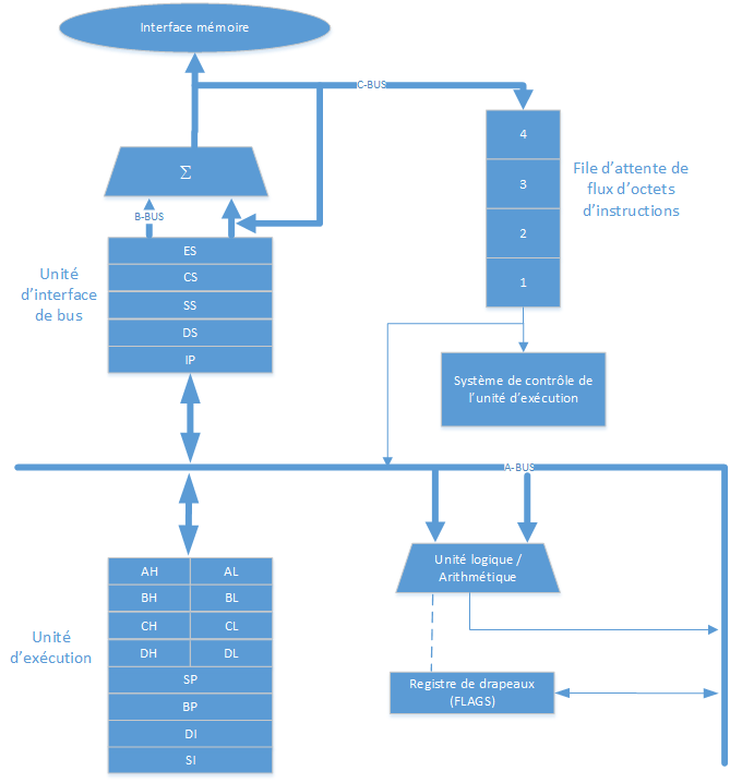 | Opérations | 8 bits et 16 bits signé (entier) ou non-signé (naturel), arithmétique binaire ou décimal, incluant les multiplications et les divisions. |