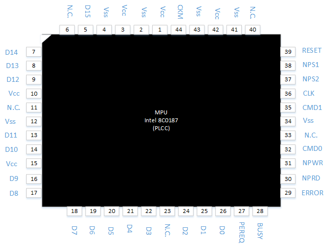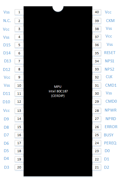 Voici le schéma des broches de la puce 80C187 de l'entreprise Intel :