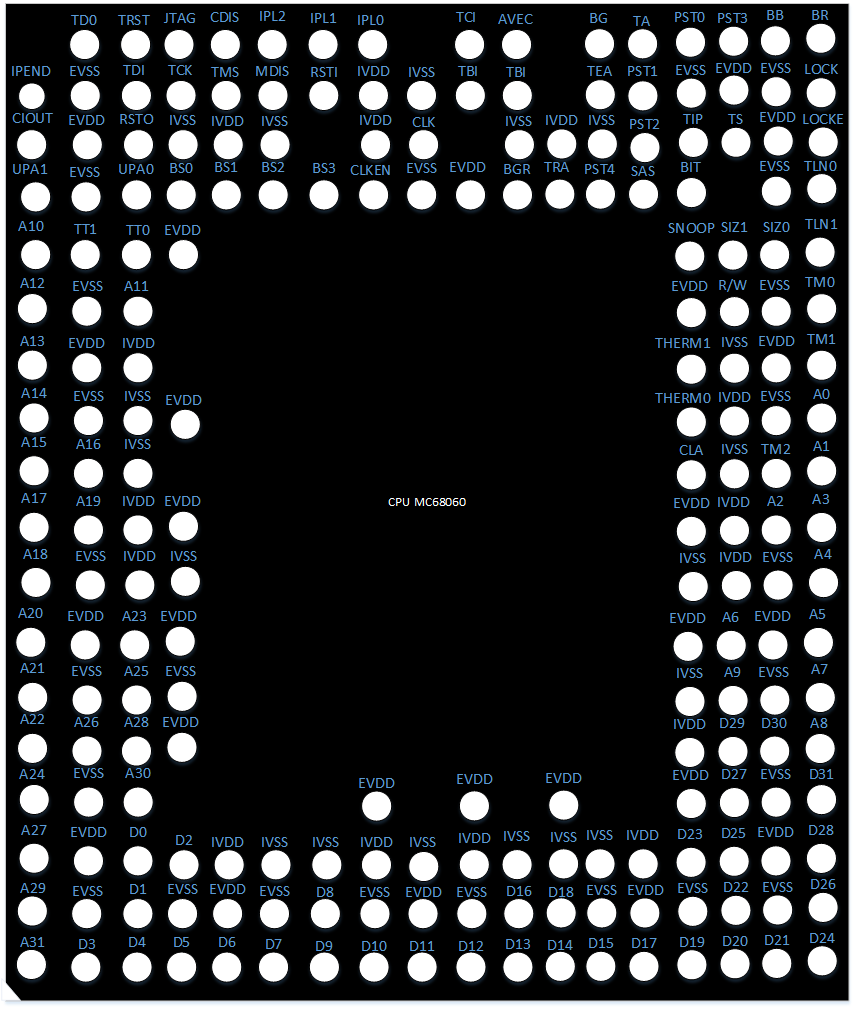 Voici le schéma des broches de la puce MC68060 de l'entreprise Motorola :