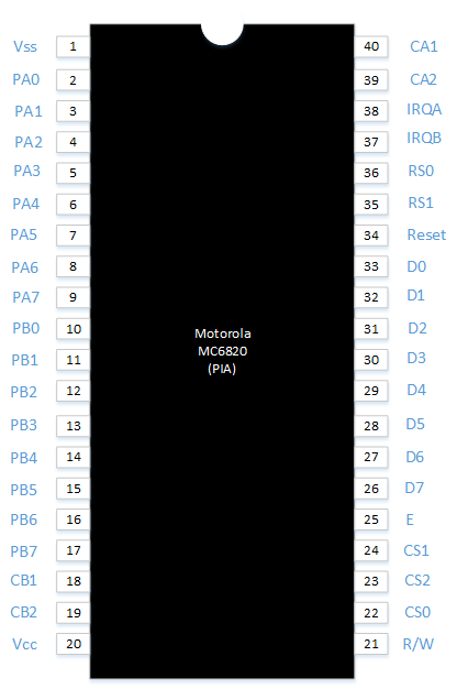 Voici le schéma des broches de la puce MC6820 de l'entreprise Motorola :