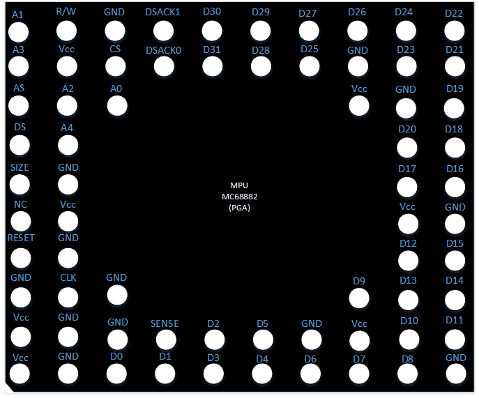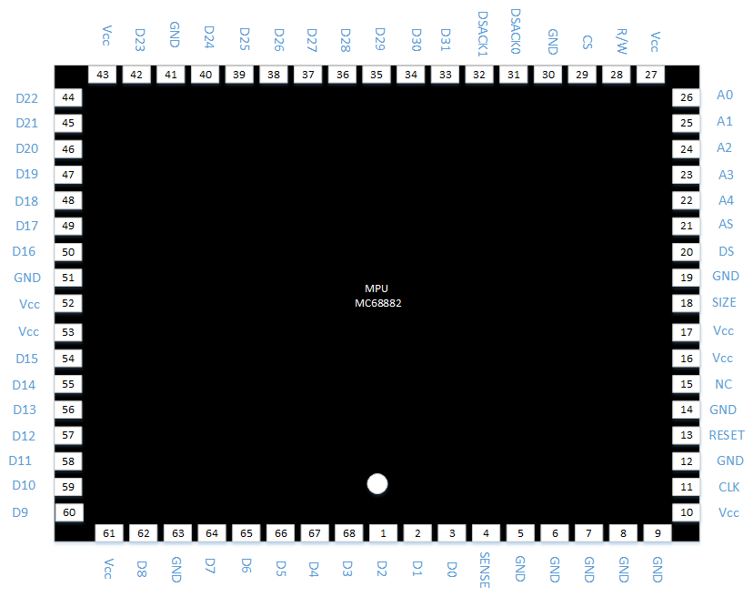 Voici le schéma des broches de la puce MC68882 de l'entreprise Motorola :