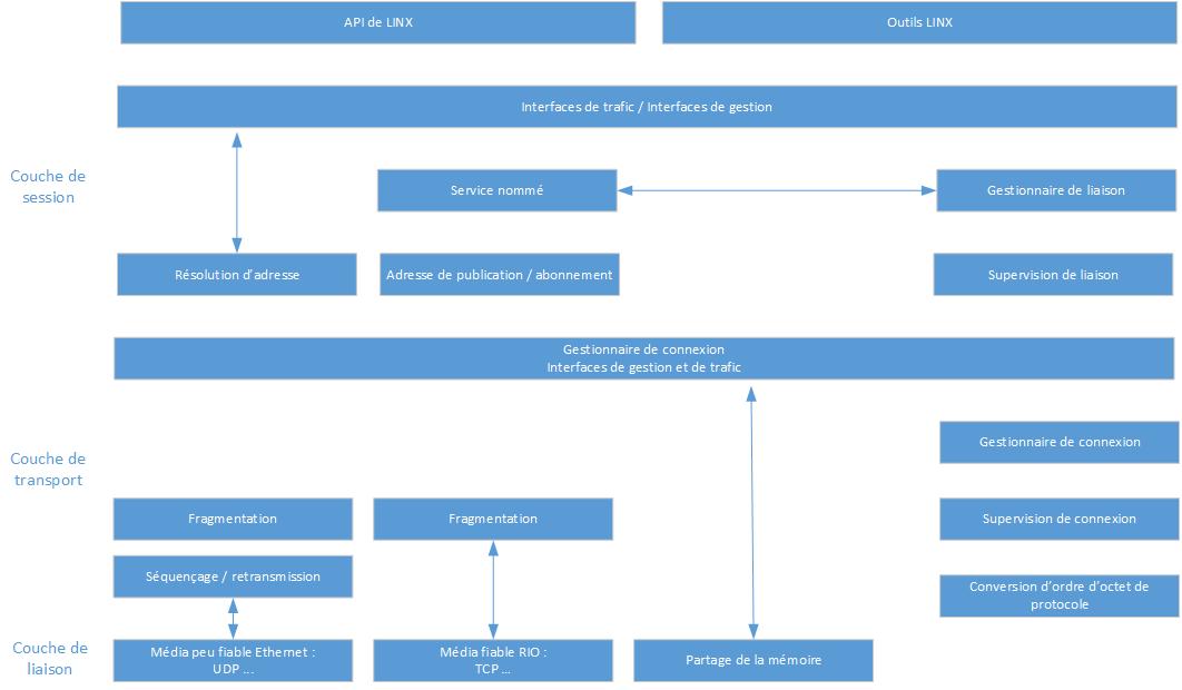 Le protocole LINX fournit une solution de communication inter-processus pour la classe croissante des systèmes hétérogènes utilisant un mélange de systèmes d'exploitation, de processeurs, de DSP de micro-contrôleurs et d'interconnexions de médias comme la mémoire partagée, RapidIO, Ethernet Gigabit ou les piles de réseau. Des architectures comme celle-ci posent des problèmes évidents, les terminaux sur un processeur utilisent généralement le mécanisme IPC natif de cette plate-forme particulière et ils sont rarement utilisables sur une plate-forme exécutant d'autres systèmes d'exploitation. Pour les autres méthodes distribués IPC, tels que la suite de protocole TCP/IP, d'autres protocoles doivent être utilisé, mais venant avec des hautes charges et le protocole TCP/IP peut ne pas être disponibles sur les petits systèmes comme DSP. Le protocole LINX résout le problème car il peut être utilisé comme le seul mécanisme IPC pour la communication locale et a distance dans tout le système distribué hétérogène. La suite de protocoles LINX comporter 2 couches : les couches RLNH et CM (Connection Manager). Le RLNH correspond à la couche de session dans le modèle OSI et intègre les fonctions IPC, y compris les méthodes permettant de rechercher les points de terminaison par nom et de les surveiller pour obtenir des avertissements désynchronisées s'il perd le signal. La couche Connection Manager correspond à la couche de transport du modèle OSI et intègre une transmission fiable dans l'ordre des messages de taille arbitraire sur n'importe quel média.