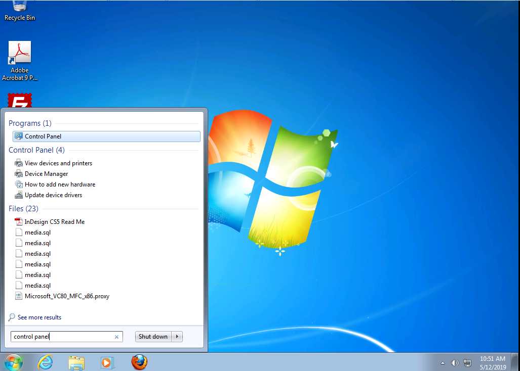 Dans la barre de recherche, tapez «control panel» et cliquez sur l'icône «Control Panel» :