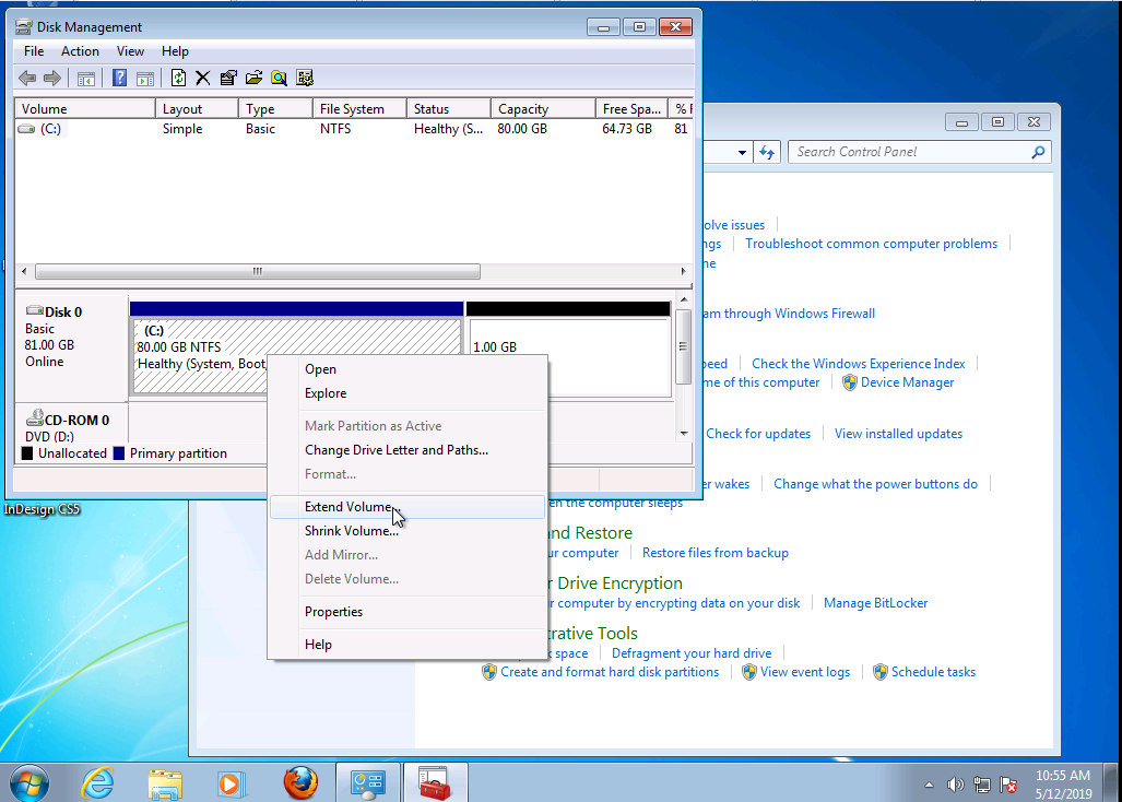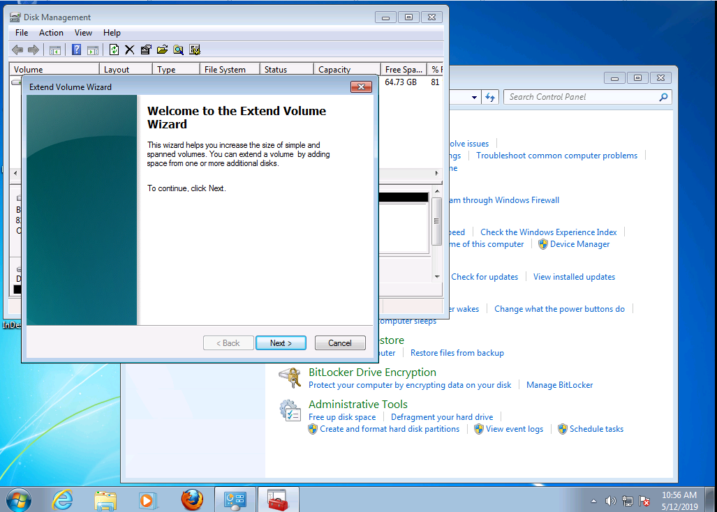 Un menu contextuel s'affiche. Vous sélectionner l'option «Extend Volume...» :