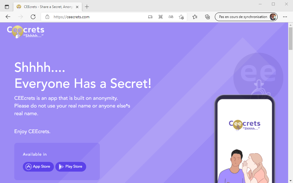 Le CEEcret est réseaux d'applications de médias sociaux anonymes où vous pouvez partager vos propres secrets et lire d'autres secrets; personne ne sait de qui il s'agit.