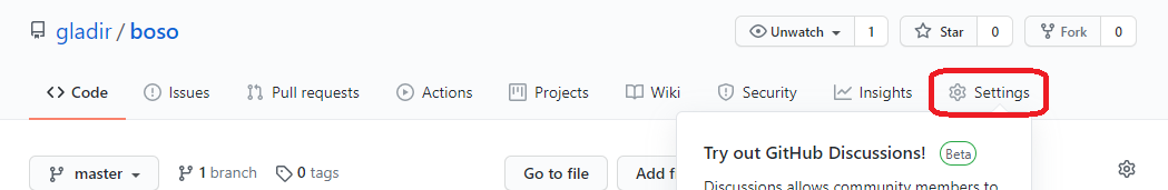 - Sous le nom de votre dépôt, cliquez sur Settings.