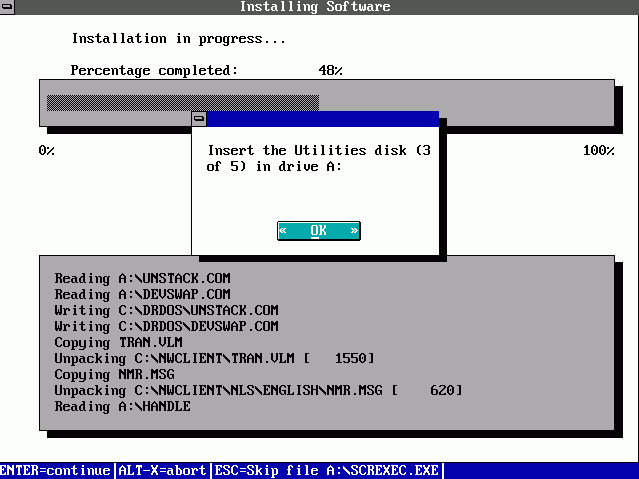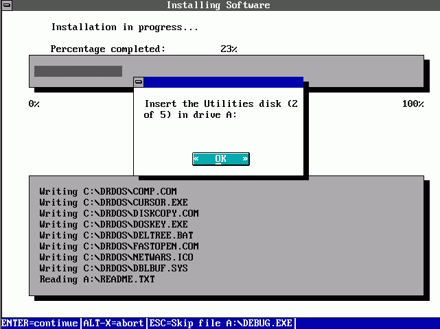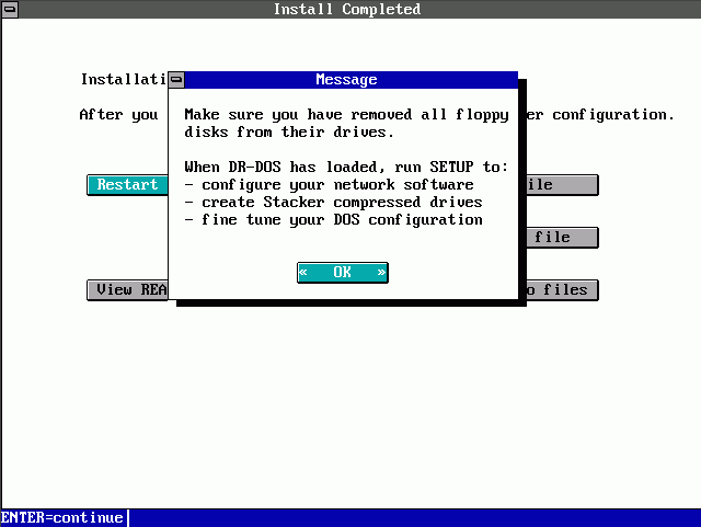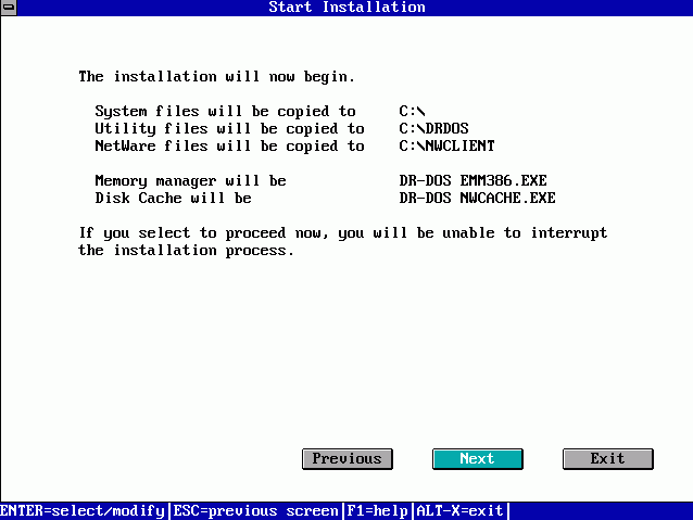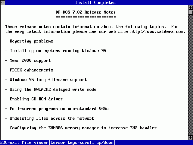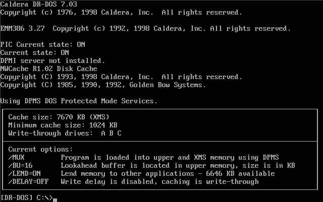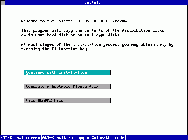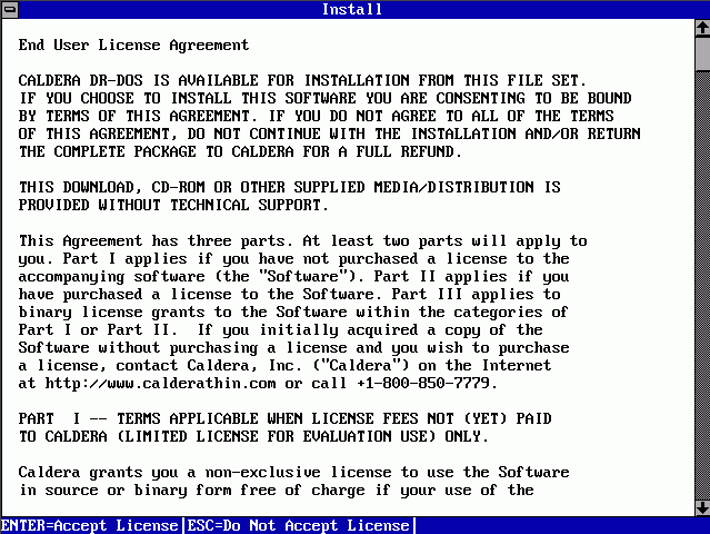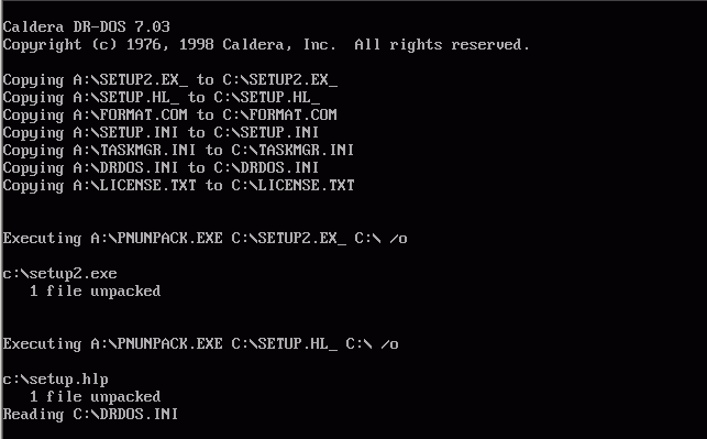 Voici les différents étapes d'installation du système d'exploitation Caldera DR-DOS 7 :