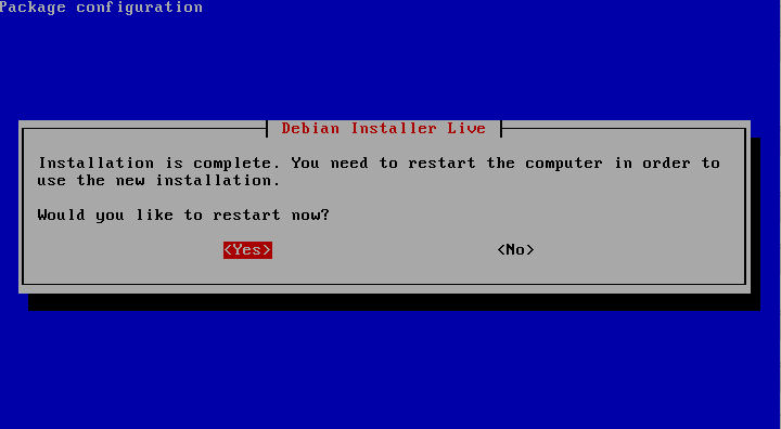 Il vous indique qu'il doit maintenant redémarrer le système. Vous cliquez sur le bouton «Yes» :