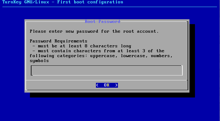 Il vous demande d'entrer le mot de passe de l'utilisateur «root» et ensuite vous cliquez sur le bouton «OK» :