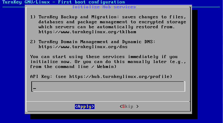 Il vous demande d'entrer votre clef d'API. Si vous n'en avez pas. Vous pouvez la rentrer plus tard. Vous cliquez sur le bouton «Apply» :