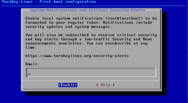 Vous entrez l'adresse de courriel pour avertir des alertes. Vous cliquez sur le bouton «Enable» :