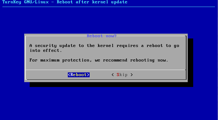 Il vous indique qu'il doit encore redémarrer. Vous cliquez sur le bouton «Reboot» :
