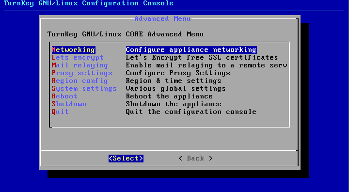Vous cliquez sur l'élément «Networking» et vous cliquez sur le bouton «Select» :