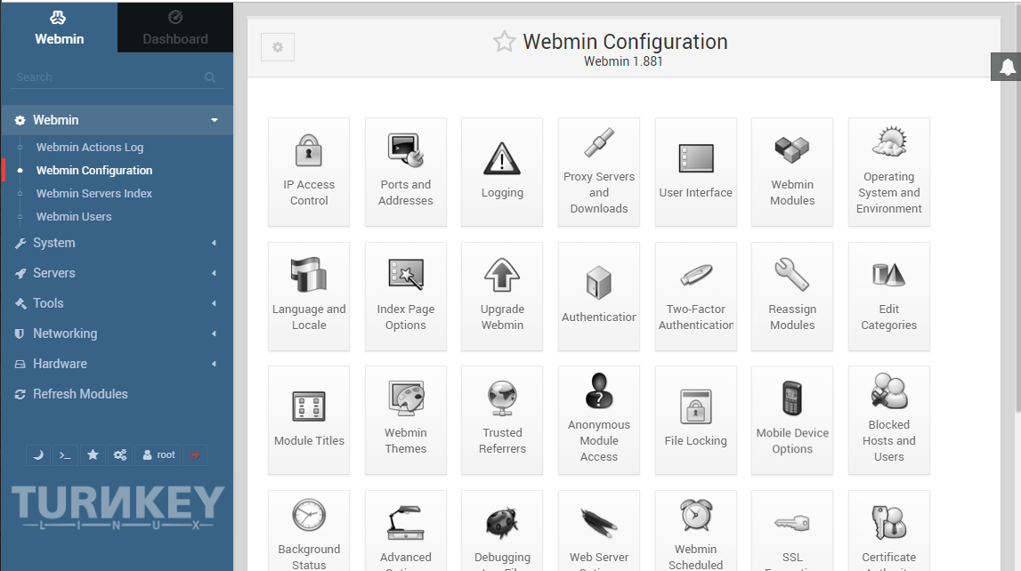 Vous allez ensuite dans le «Webmin Configuration» et ajuster le serveur selon vos besoins :