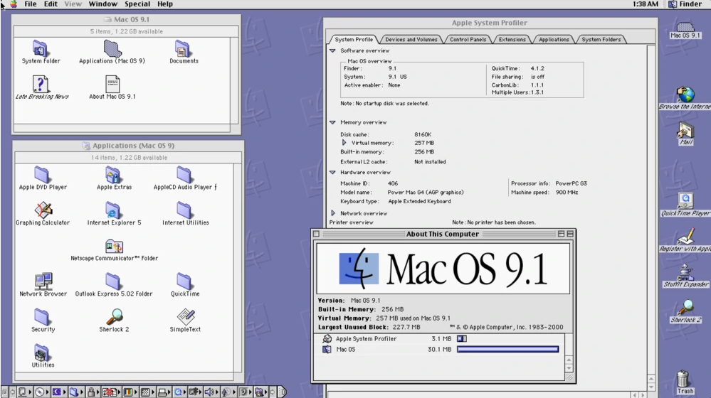 - Le Mac OS 9.1 est bien amélioré en termes de vitesse et de stabilité globales ; le Finder, ainsi que la commutation entre les applications, est nettement plus rapide.