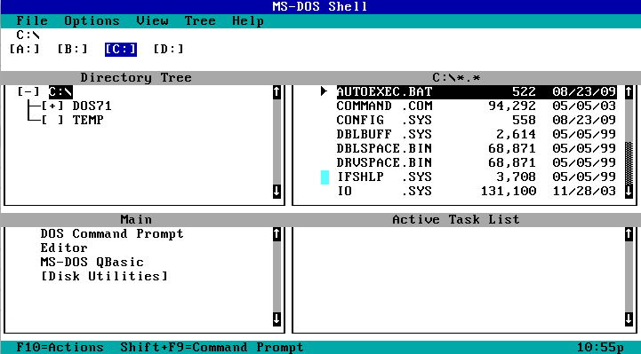 - La commande DOSSHELL fournit une représentation visuelle des fichiers et des répertoires sur les disques. En utilisant le DOS Shell, vous pouvez effectuer de nombreuses tâches de gestion de disque effectuées à l'aide de l'ensemble standard de commandes MS-DOS. Le DOS Shell est inclus avec MS-DOS version 4 et ultérieure (disponible dans la version 6 uniquement sur le disque supplémentaire MS-DOS).
