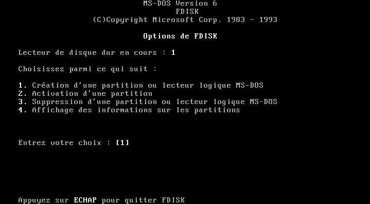 L'exemple suivant permet de lancer la commande FDISK sans paramètre :