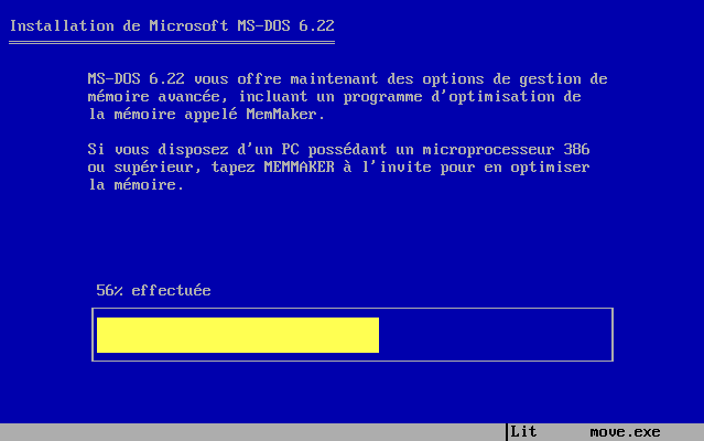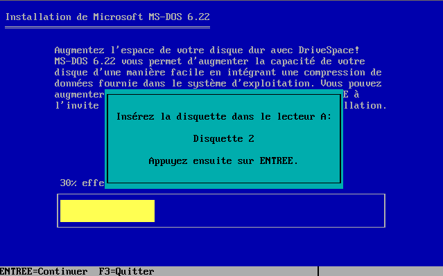 Le système d'exploitation MS-DOS 6 était uniquement disponible sous forme de disquette 3 1/2 ou 5 1/4, il fallait donc, insérer une disquette au moment opportun afin de pouvoir installer correctement le système d'exploitation.