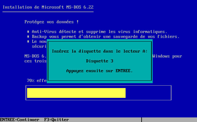 Il continue de copier les fichiers disponible sur la disquettes sur le disque dur et vous demandera d'insérer la troisième disquette :