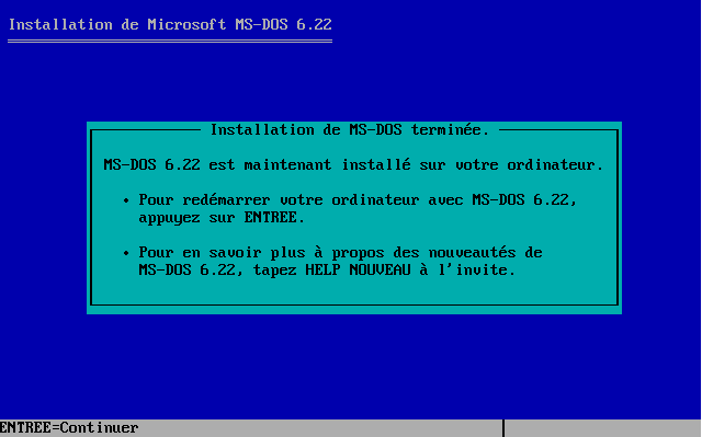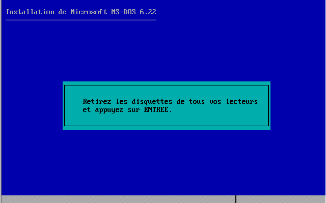 Il termine de copier les fichiers ou vous demande de retirer du lecteur la dernière disquette et d'appuyer sur la touche ENTER.