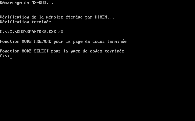Une fois le système d'exploitation redémarrer, vous obtenez un prompt «C:\>» attendant vos instructions disponible ici :