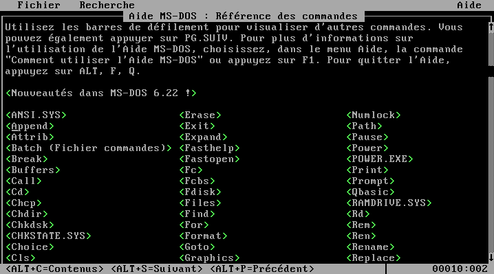 | HELP [/B] [/G] [/H] [/NOHI] [rubrique] |