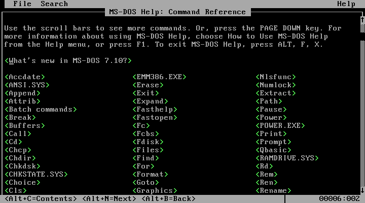 DOSHELP [/B] [/G] [/H] [/NOHI] [topic]