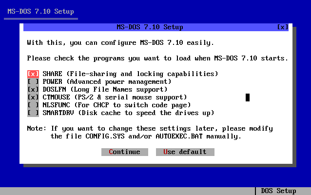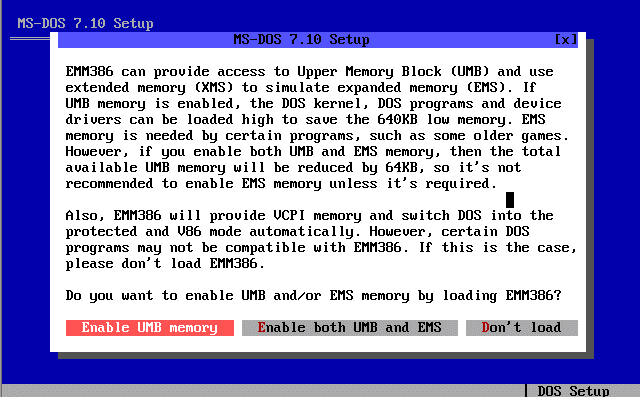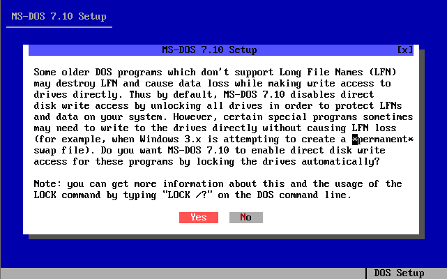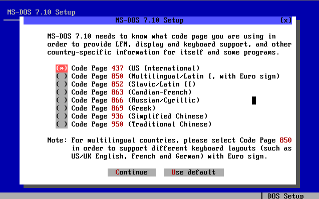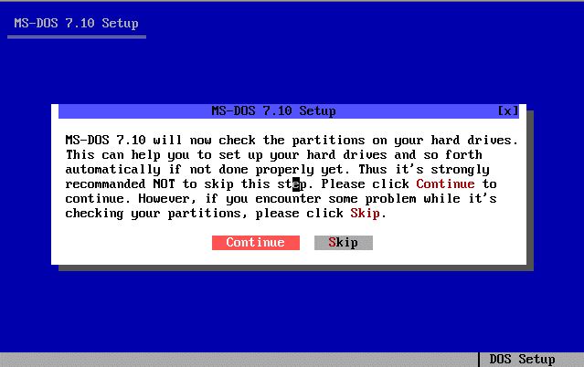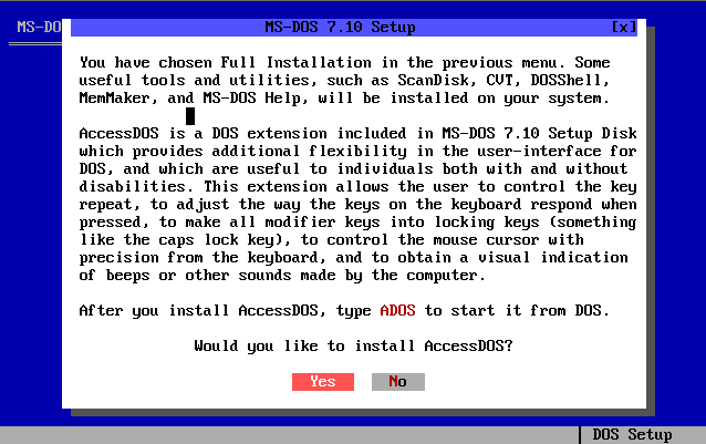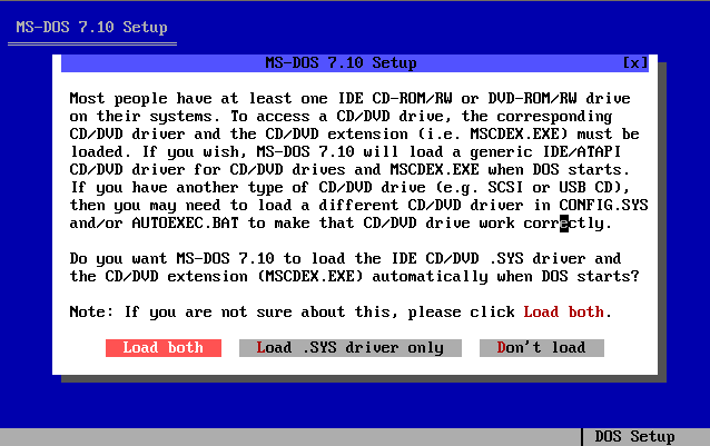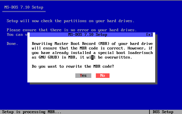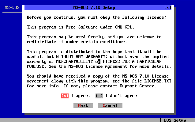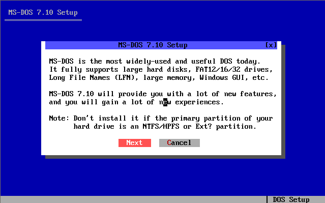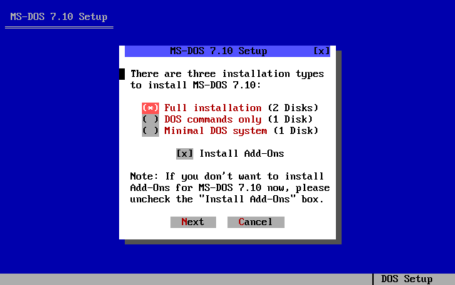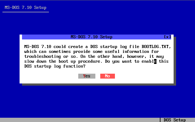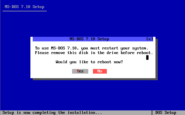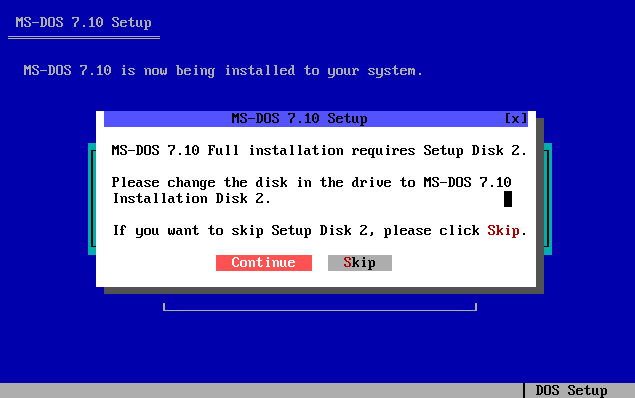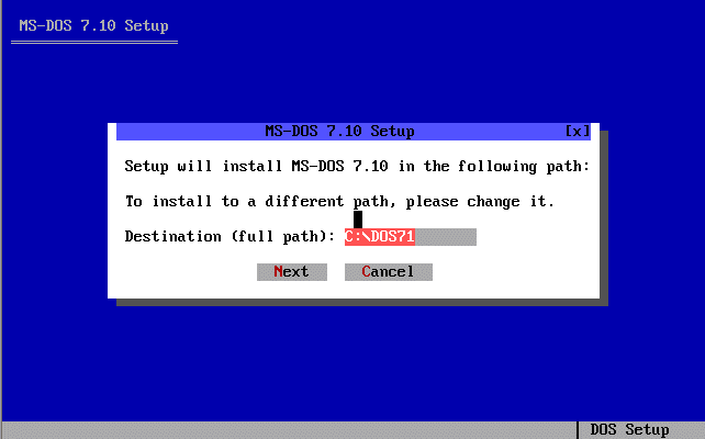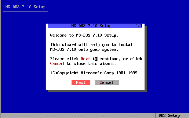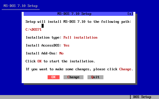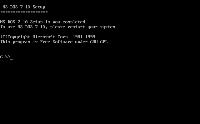 Voici les différents étapes d'installation du système d'exploitation MS-DOS 7.10 :