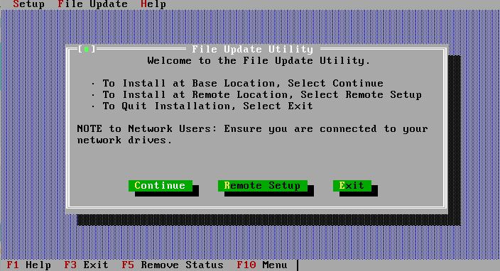 - Le paramètre FILES de votre fichier CONFIG.SYS doit être d'au moins 20 pour exécuter correctement File Update.