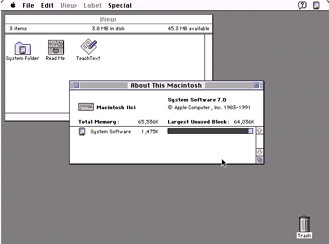 Le système d'exploitation System 7.0 ou Système 7.0 est la version succédant au System 6.1. Il offrait un certain nombre d'améliorations du système qui étaient auparavant absentes ou uniquement disponibles en tant qu'extensions facultatives du système d'exploitation. Les fonctionnalités ajoutées avec la version System 7 comprenaient la mémoire virtuelle, le partage de fichiers personnels, QuickTime, QuickDraw 3D et une interface utilisateur améliorée. Le Système 7 est souvent utilisé de manière générique pour désigner toutes les versions du système 7.x. Avec la sortie de Mac OS 7.6 en 1997, Apple a officiellement renommé le système d'exploitation Mac OS, un nom qui était apparu pour la première fois sur l'écran de démarrage de 7.5.1. Le système 7 a été développé pour les Mac utilisant la famille de microprocesseurs 68000 de Motorola, mais a été porté sur le PowerPC après qu'Apple ait adopté le nouveau microprocesseur.