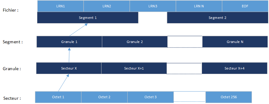 | Secteur | Un enregistrement physique, composé de 256 octets contigus. |