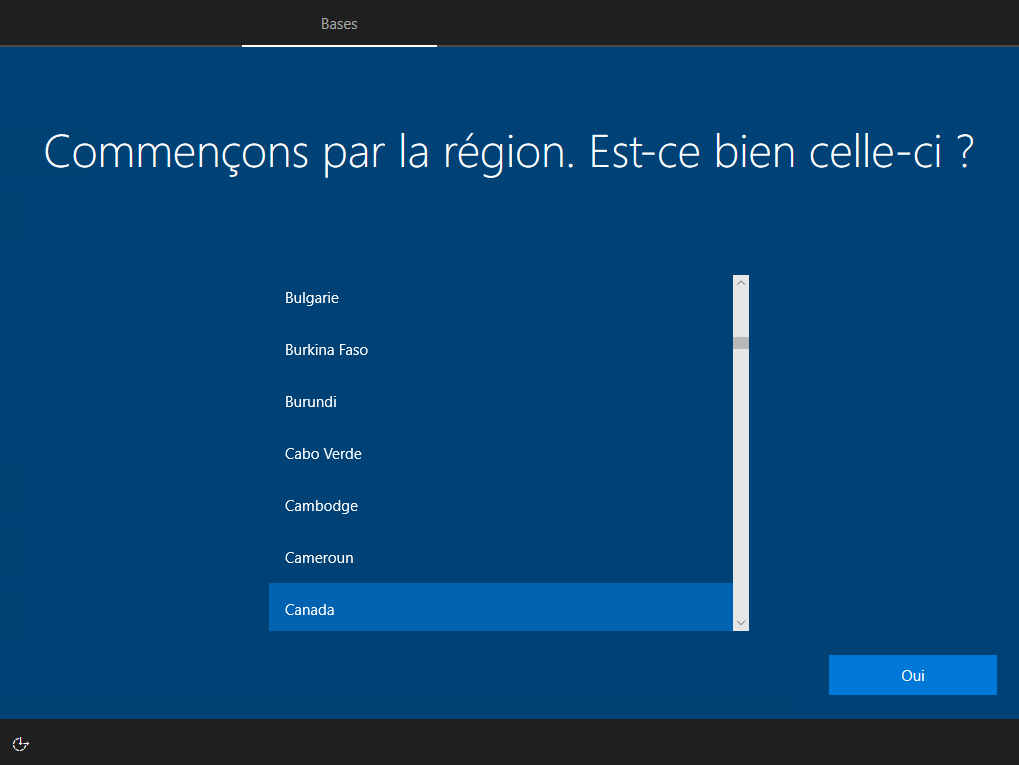 Il vous demande dans quel région vous êtes situés, vous cliquez sur le pays approprié et ensuite sur le bouton Oui :