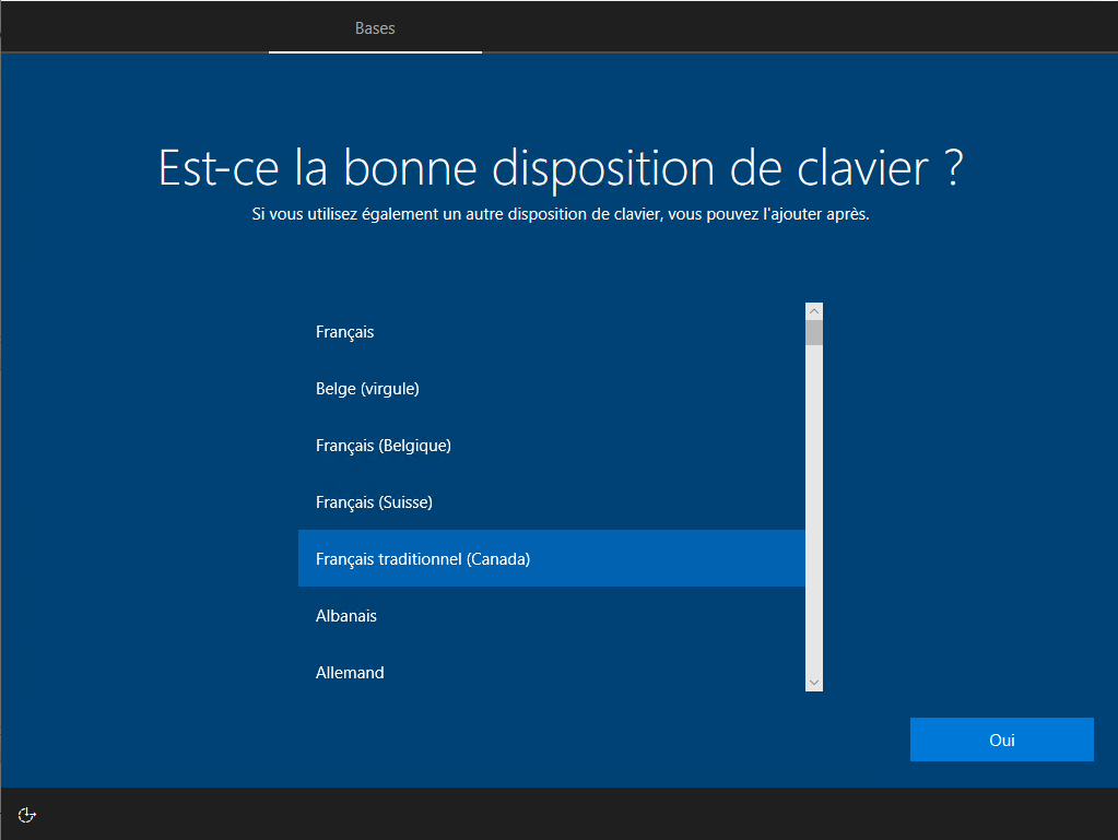 Il vous demande de choisir votre type de clavier, vous cliquez sur le bouton Oui :