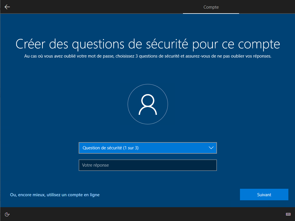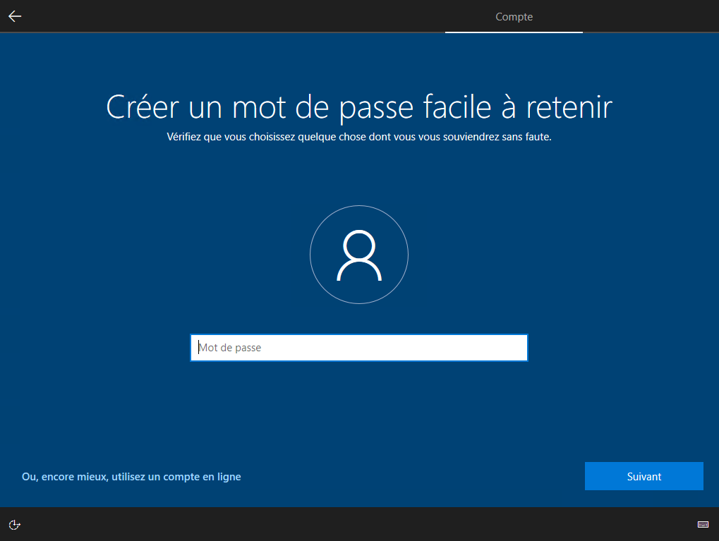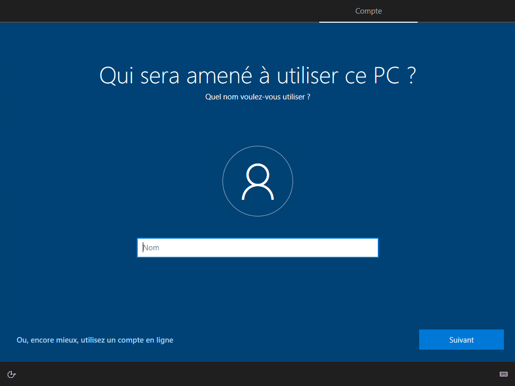 Il vous propose de vous connecter avec un compte Microsoft, si vous n'avez pas de compte valide, il vous proposera de créer un compte local :