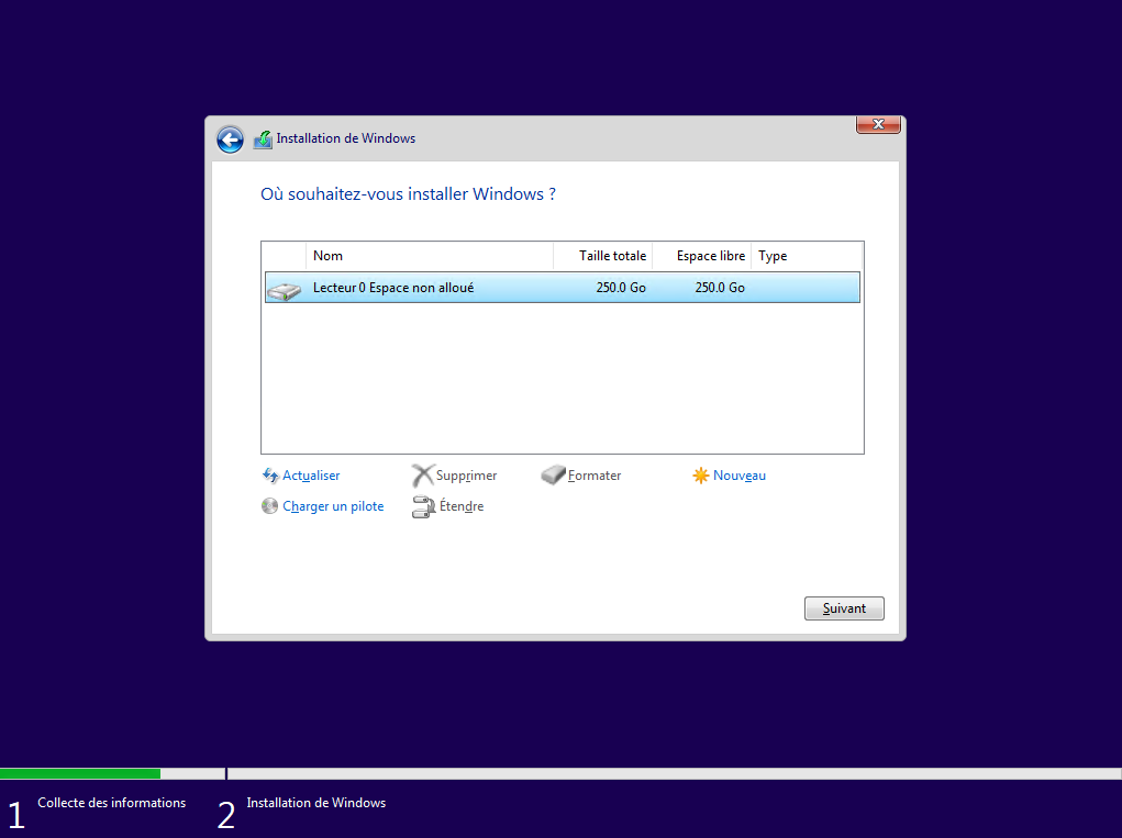 Si vous souhaitez utiliser toutes les ressources de la machine, vous cliquez immédiatement sur le bouton Suivant :