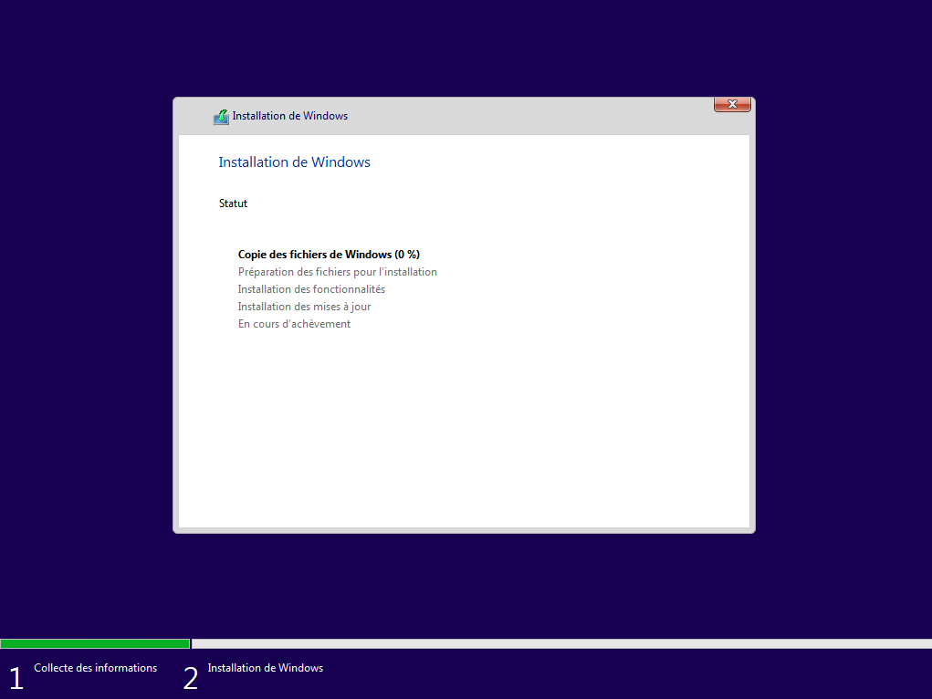 Il copie les fichiers nécessaires à Windows pour s'exécuter localement. Vous le laissez continuer.