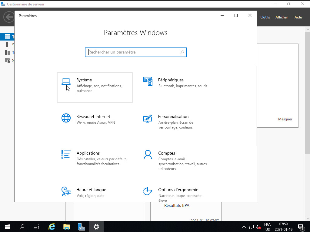 Une fenêtre de «paramètre Windows». Vous cliquez sur Système :