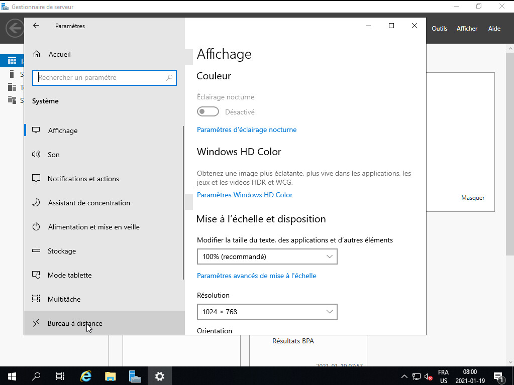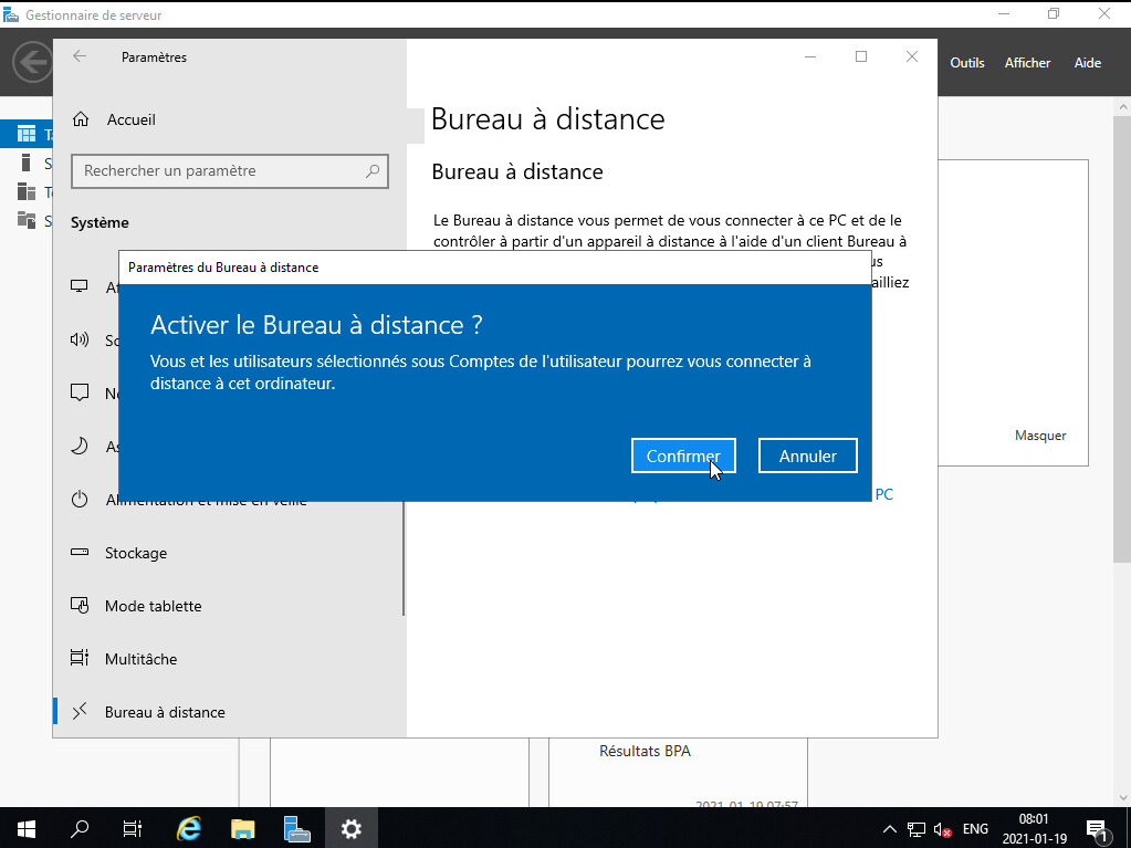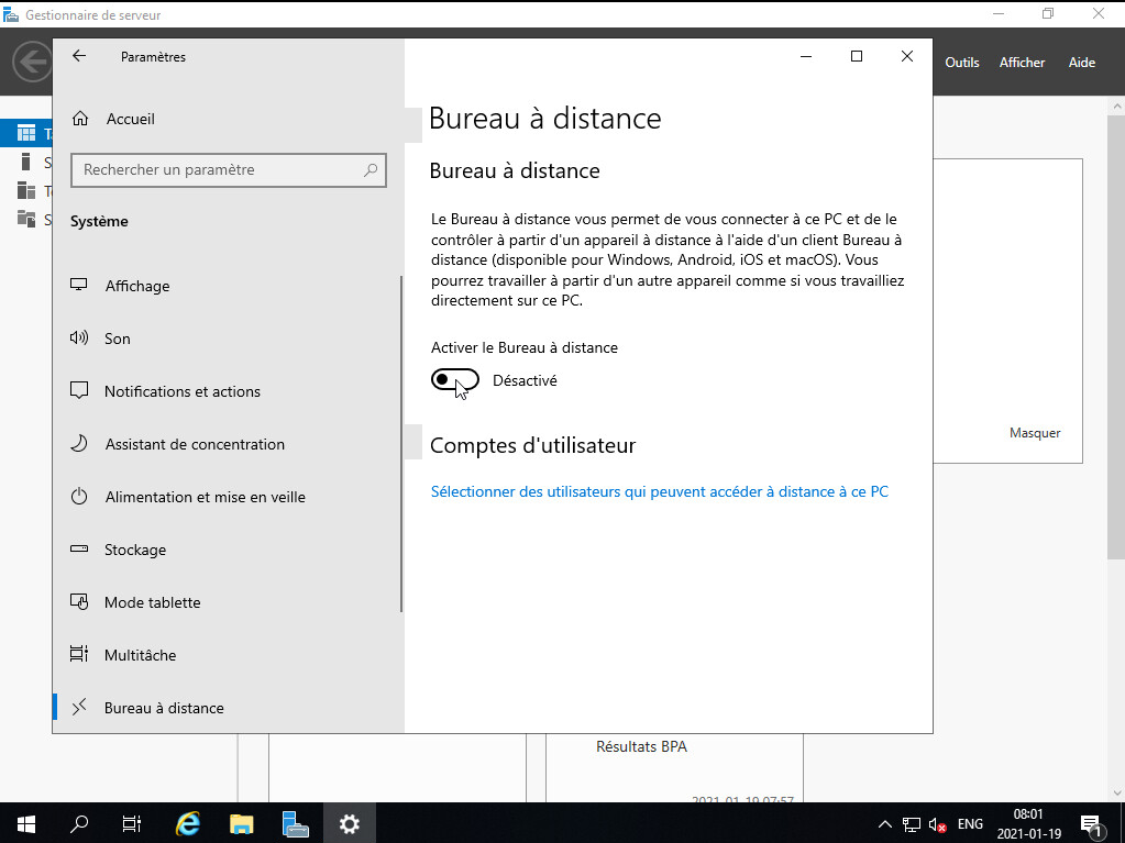 Il change de page, alors vous descendez en bas de la liste et vous cliquez sur l'élément «Bureau à distance» :